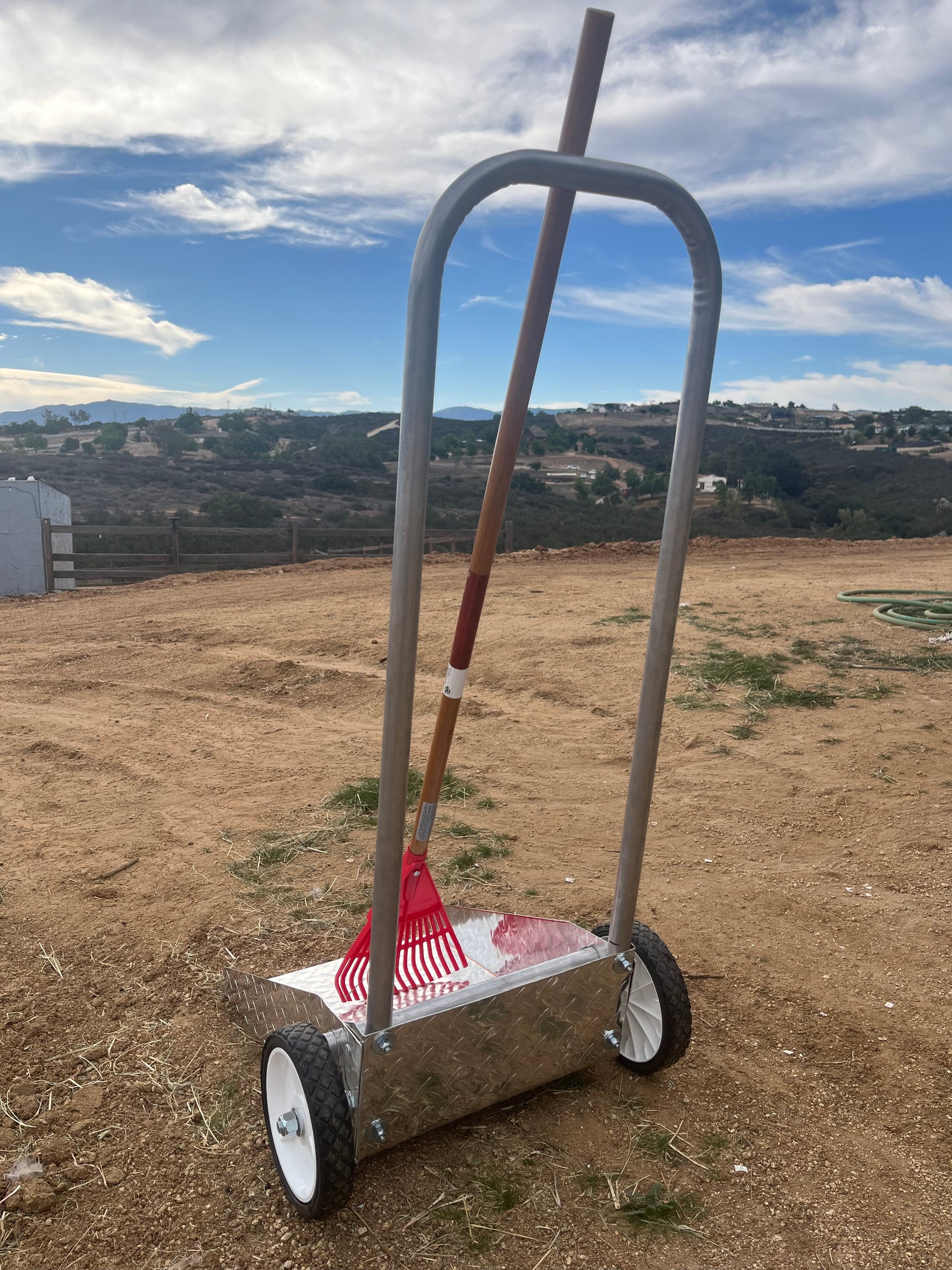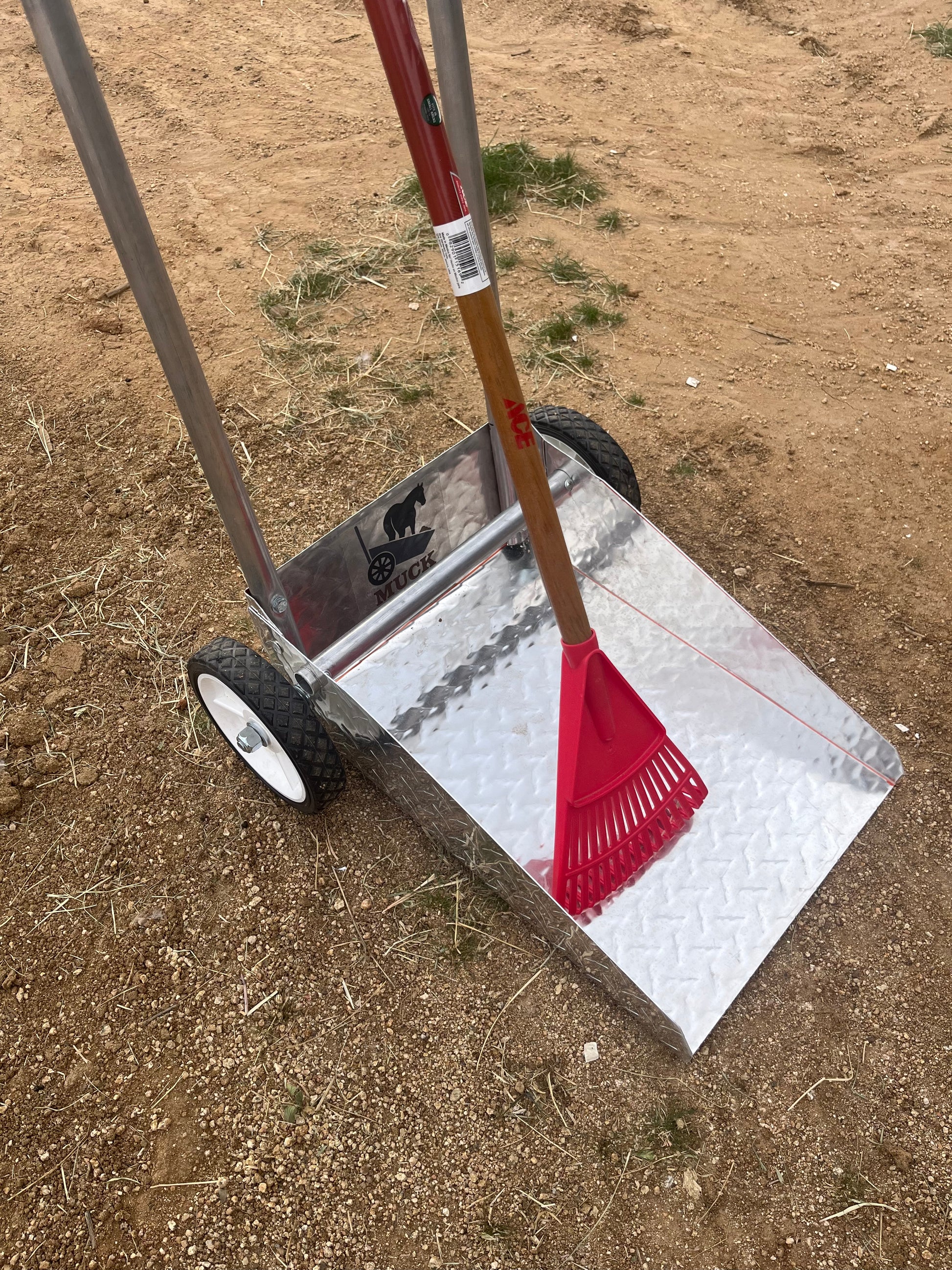 The Little Mucker is for smaller clean up, ideal for dog owners and small farm animals such as goats, chickens, pigs, etc! It makes clean up more efficient, simple, and faster due to easy maneuvering. Rake is included.